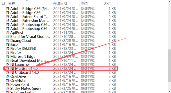 23) 再菜单栏内找到 “NI Multisim 14.0”,或者直接在搜索框内搜索 “NI Multisim 14.0”: