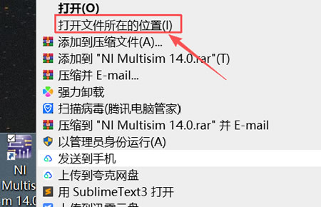 25) 在桌面右击 “NI Multisim 14.0” 软件,点击 “打开文件所在的位置”: