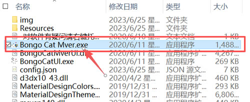 2) 点击进入解压后的 BONGOCATxxmhh 文件夹,双击 Bongo Cat Mver.exe 启动软件:
