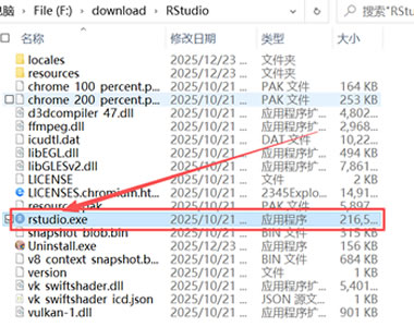 10) 进入安装的文件夹,双击 “rstudio.exe”: