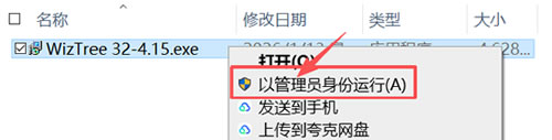 1) 下载安装包,右击 WizTree 32-4.15.exe 以管理员身份运行: