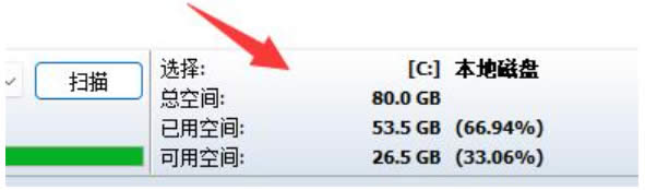 2、扫描完成后,可以看到该磁盘的总空间、已用空间和可用空间。