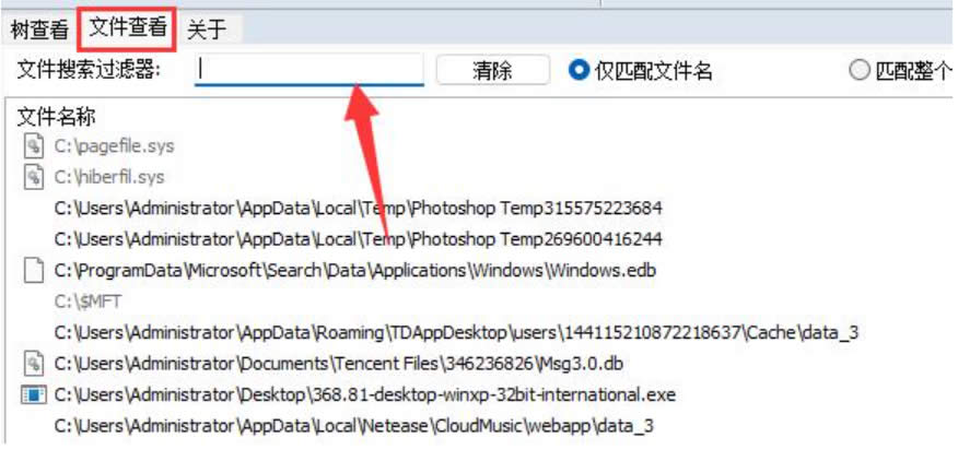 5、在“文件查看”下,可以通过过滤器单独搜索某一个文件。