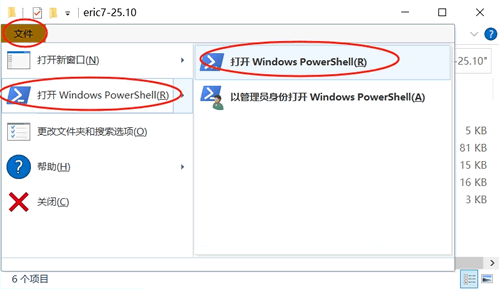 3) 在上图的文件夹中,按照下图所示打开 Windows PowerShell: