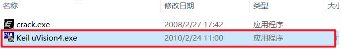 在Keil4安装->Keil uVision4下找到安装文件:Keil uVision4.exe,双击开始安装
