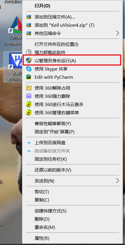 一、以管理员身份运行Keil uVision4