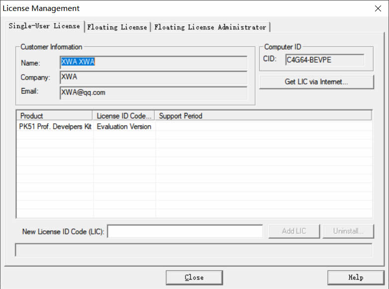 打开后的Licence Management就是图11的样子,当然因为每个人在开始安装的时候填的信息不一样,所以这里呈现的信息也不一样。