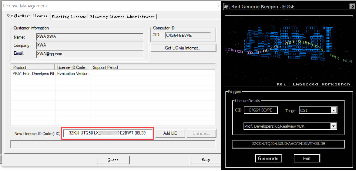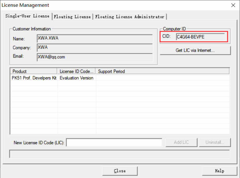 图17 将生成的New Licence ID Code复制到“Licence Management”的对应位置