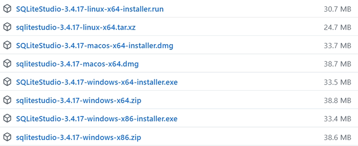这里为大家提供了 SQLiteStudio 最新版的安装包:网盘里包含使用 Windows、Linux 和 Mac OS 三大平台的 SQLiteStudio 安装包,各个平台提供了至少 2 种安装方式,如下图所示,大家对号入座: