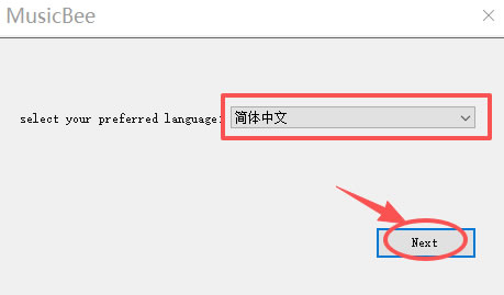 1) 双击桌面图标,出现下图所示界面,选择 “简体中文”,点击 “Next”: