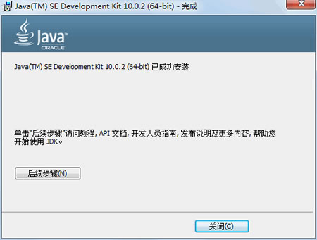 (5) 单击“下一步”按钮,安装 JRE。当 JRE 安装完成之后,将打开 JDK 安装完成界面: