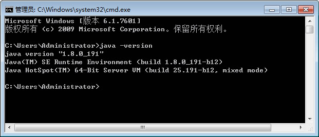 提示:在命令提示符后输入测试命令时,需要注意 java 和减号之间有一个空格,而减号和 version 之间没有空格。