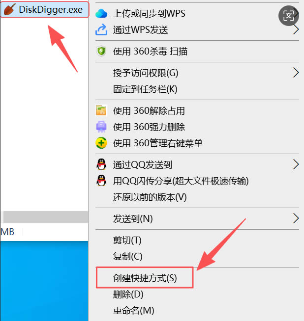 1)下载安装包,双击启动“DiskDigger.exe”文件,即可打开:2)在下载地址找到“DiskDigger.exe"文件,右键单击,点击“创建快捷方式”: