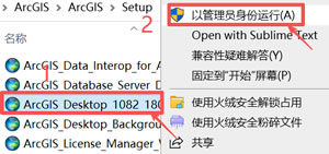 4) 右键 ArcGIS_Desktop_1082_180378.exe 点击 “以管理员身份运行”