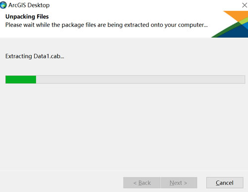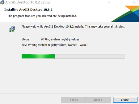 16) 这时系统会安装 ArcGIS 的核心组件,等待进度条加载到 100%(加载过程中根据电脑的配置不同,需要等待时间也不同,大约需要 10-20 分钟左右):