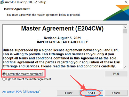 9) 勾选 “I accept the master agreement”,点击 “Next”: