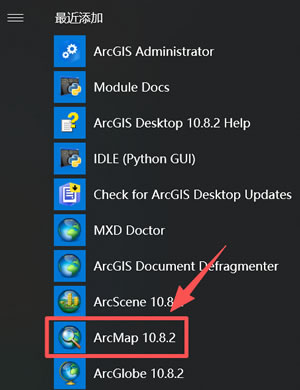 19) 在最近添加中找到 ArcMap 10.8.2,将该软件图标拖拽到桌面:
