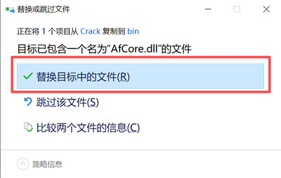 24) 弹出下图所示界面,点击 “替换目标中的文件”: