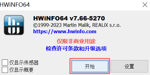 1)下载 HWiNFO 文件夹,双击启动“HWiNFO64.exe”文件:2)点击“开始”: