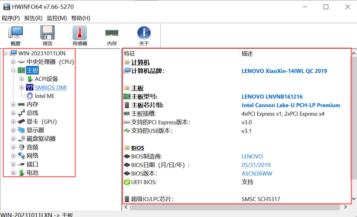 2、点击左侧栏中的任意硬件,就会在右侧显示出详细信息。