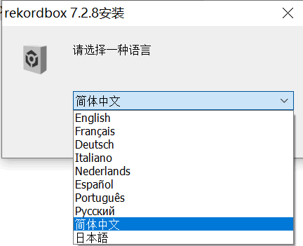 1)下载文件夹内名为“rekordbox.zip”的压缩包,解压后打开。2)选择语言,点击右边下拉按钮: