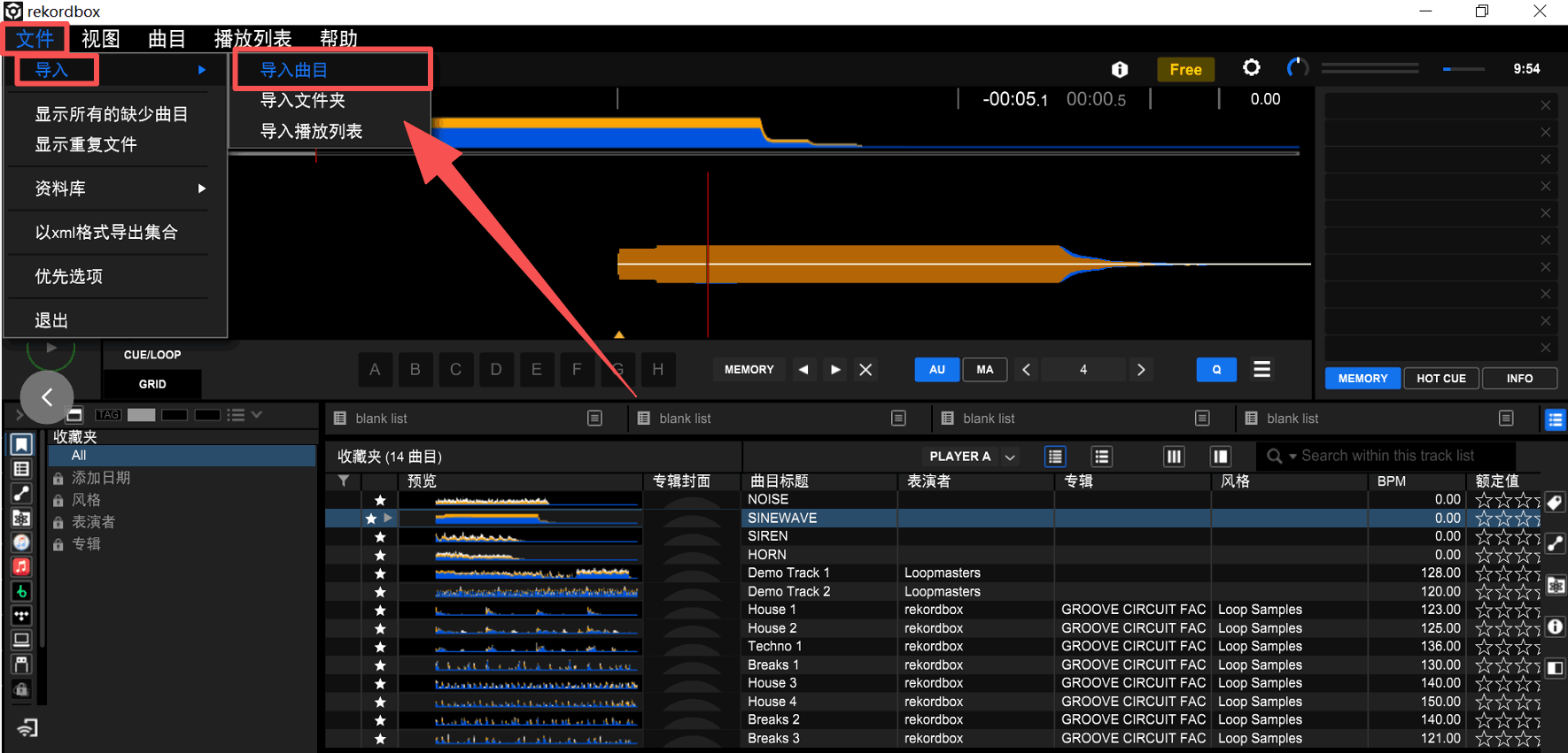 在 rekordbox 主界面,点击左侧的“文件”标签,选择“导入”,即可将本地音乐文件导入软件。rekordbox 支持多种音频格式,如 MP3、WAV 等。导入后,软件会自动分析音乐的 BPM(每分钟节拍数)、节拍网格、调性等信息,这些信息对于后续的混音和表演至关重要。