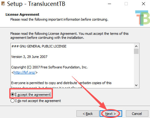 3) 勾选 “I accept the agreement”,点击 “Next”: