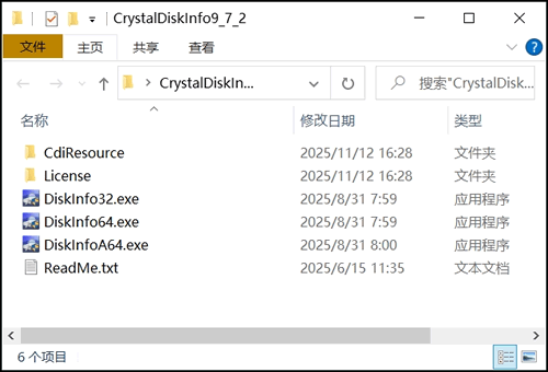 下载得到 CrystalDiskInfo9_7_2.zip 压缩包,解压后如下图所示: