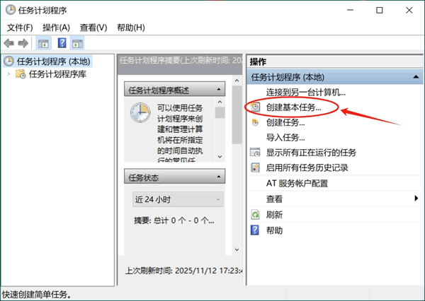 ② 在右侧的操作栏中,点击“创建基本任务…”: