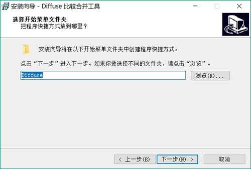 笔者使用的是 Windows x64 系统,因此这里以 Windows 为例,展示 Diffuse 的安装过程:1) 下载 .exe 安装程序,双击启动,弹出下图的界面,点击“下一步”: