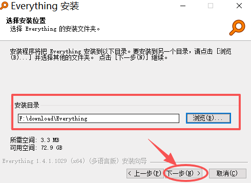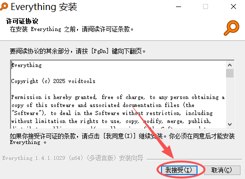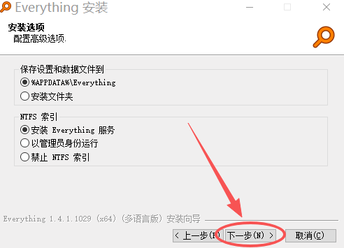1) 下载安装包,双击 Everything(x64).exe 启动安装: