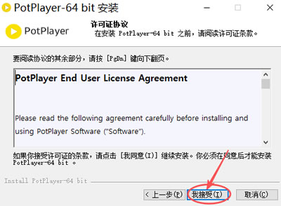 1) 下载安装包,双击 PotPlayerSetup64.exe 启动安装: