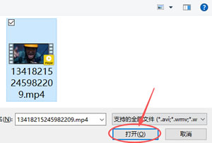 ② 找到视频存放位置,选中视频,点击 “打开”: