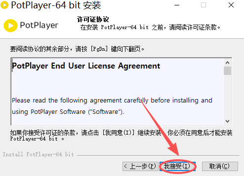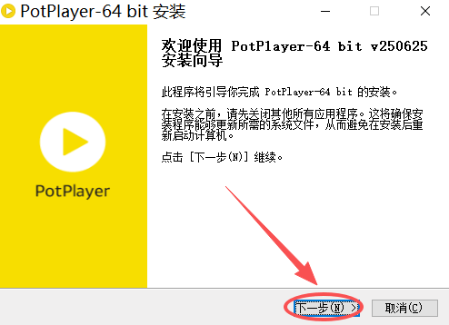 1) 下载安装包,双击 PotPlayerSetup64.exe 启动安装: