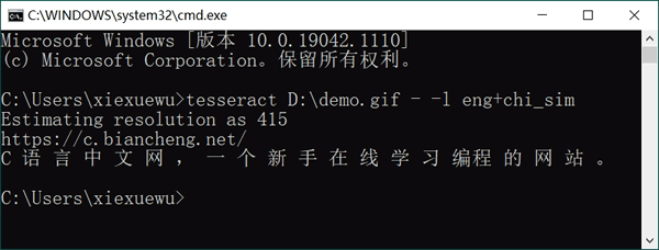 tesseract D:\demo.gif D:\temp -l eng+chi_sim