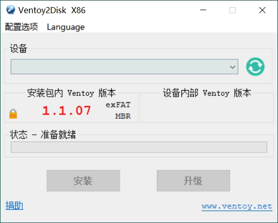 双击 Ventoy2Disk.exe 即可启动 Ventoy,如下图所示: