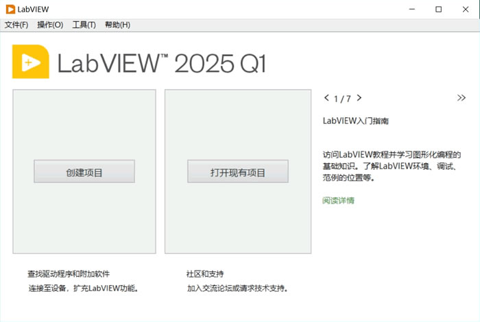 等待软件启动,可以看到 LabVIEW2025 的主界面了: