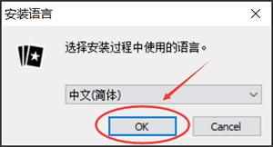 这里以在 PC 上安装 KARDS 为例,安卓手机直接下载 kards.apk 然后安装即可。1) 下载 kards_installer.exe,这是 KARDS 游戏的启动器,双击启动,默认就是简体中文,点击 OK: