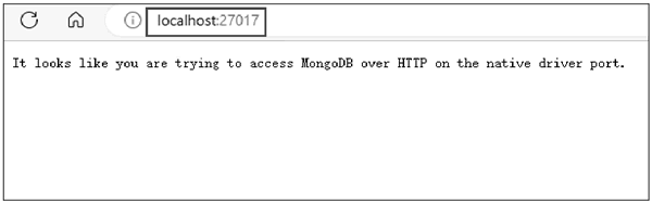 3) 测试服务是否能正常使用。访问(内部网站) http∶//localhost∶27017,得到的结果如下图所示。图中所示内容表示服务正常使用,默认端口号为 27017。
