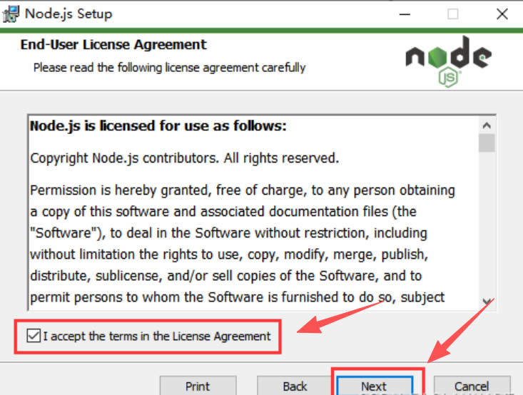 下载好 Node.js 的安装包后,双击启动安装。1.点next