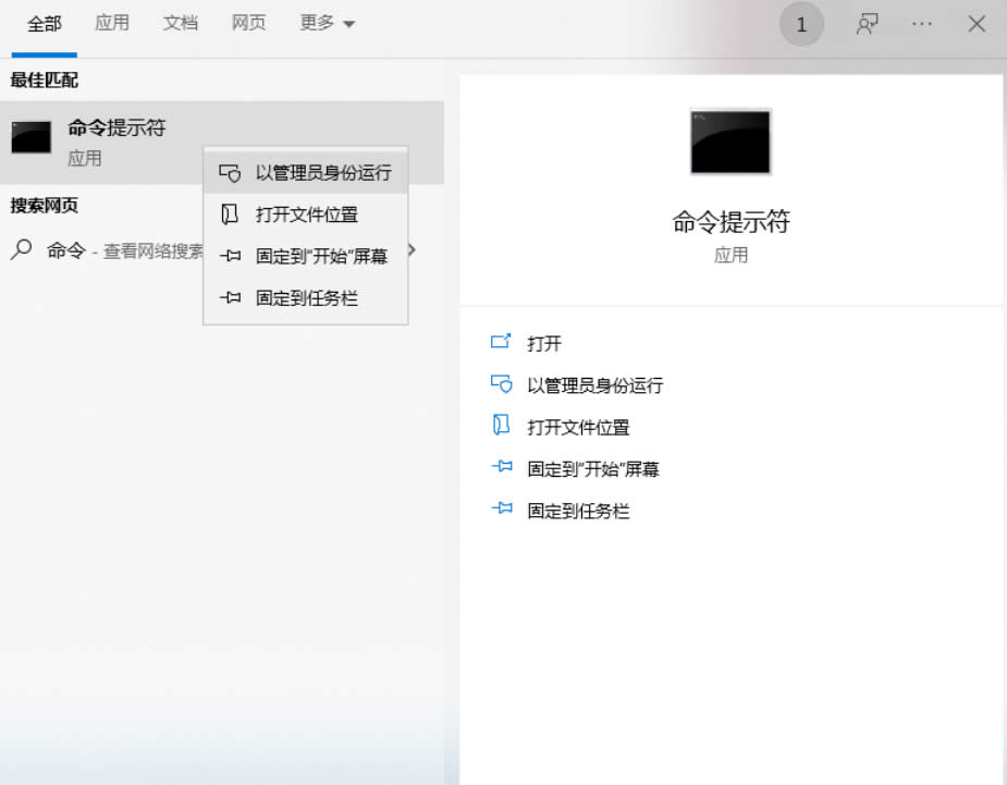 Win + s 搜索 “命令提示符”,右键以管理员身份运行。