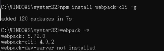 输入 webpack -v,能输出版本号就说明都安装好了。