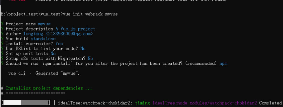 创建项目(最好在cd到D盘、E盘的某个位置,即项目的路径,否则项目会新建在C:\Users\用户名\,也可以直接在想要的项目路径下输入cmd)可能会出现权限问题,所以我们还是以管理员运行cmd窗口。