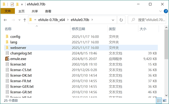 - eMule0.70b-Installer64.exe:适用于 Windows x64 位系统的安装包,下载后需要根据引导一步步安装;