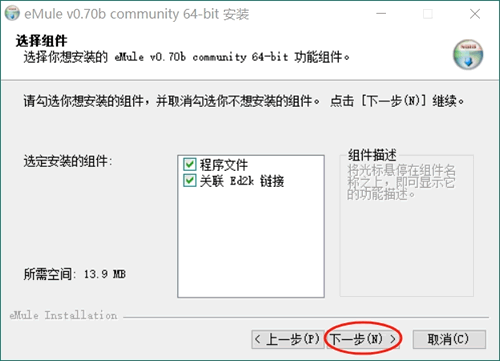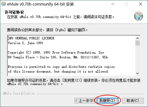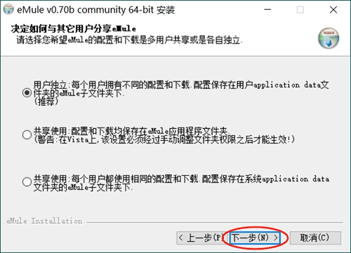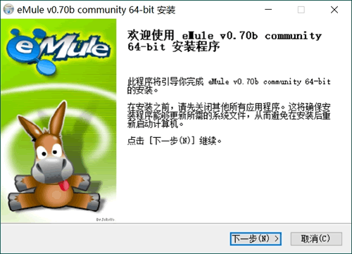 2) 下载 eMule0.70b-Installer64.exe 安装包的用户,安装 eMule 的具体过程如下: