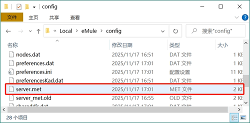 将下载得到的 server.met 文件,手动放入