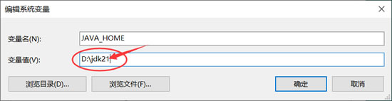 命名 JAVA_HOME,将 JDK17 的安装路径作为变量值,点击确定: