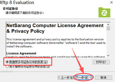 4) 勾选 “我接受许可证协议中的条款”,点击 “下一步”: