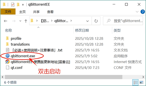 1) 下载 qBittorrent 便携版的用户,不需要安装,解压即用: