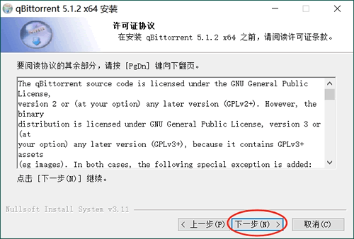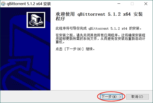 ① 双击启动 qbittorrent_5.1.2_x64_setup.exe,出现下图的窗口,点击“OK”: